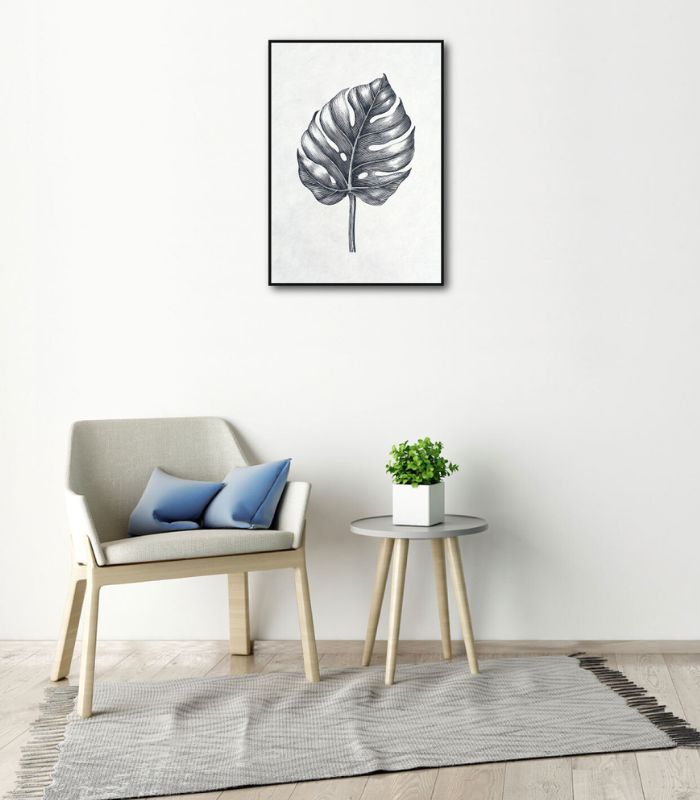 Framed Canvas Artwork - Greyscale Monstera - 50x70cm