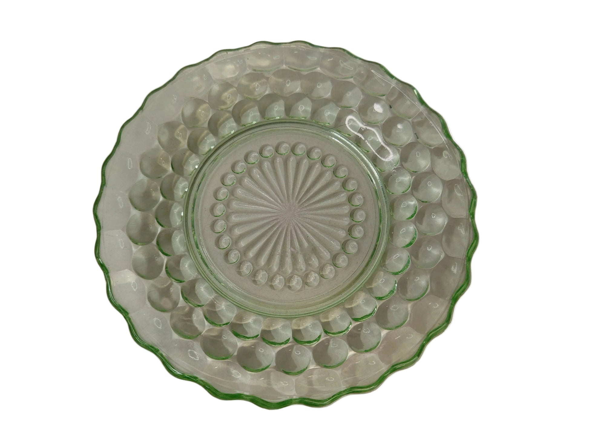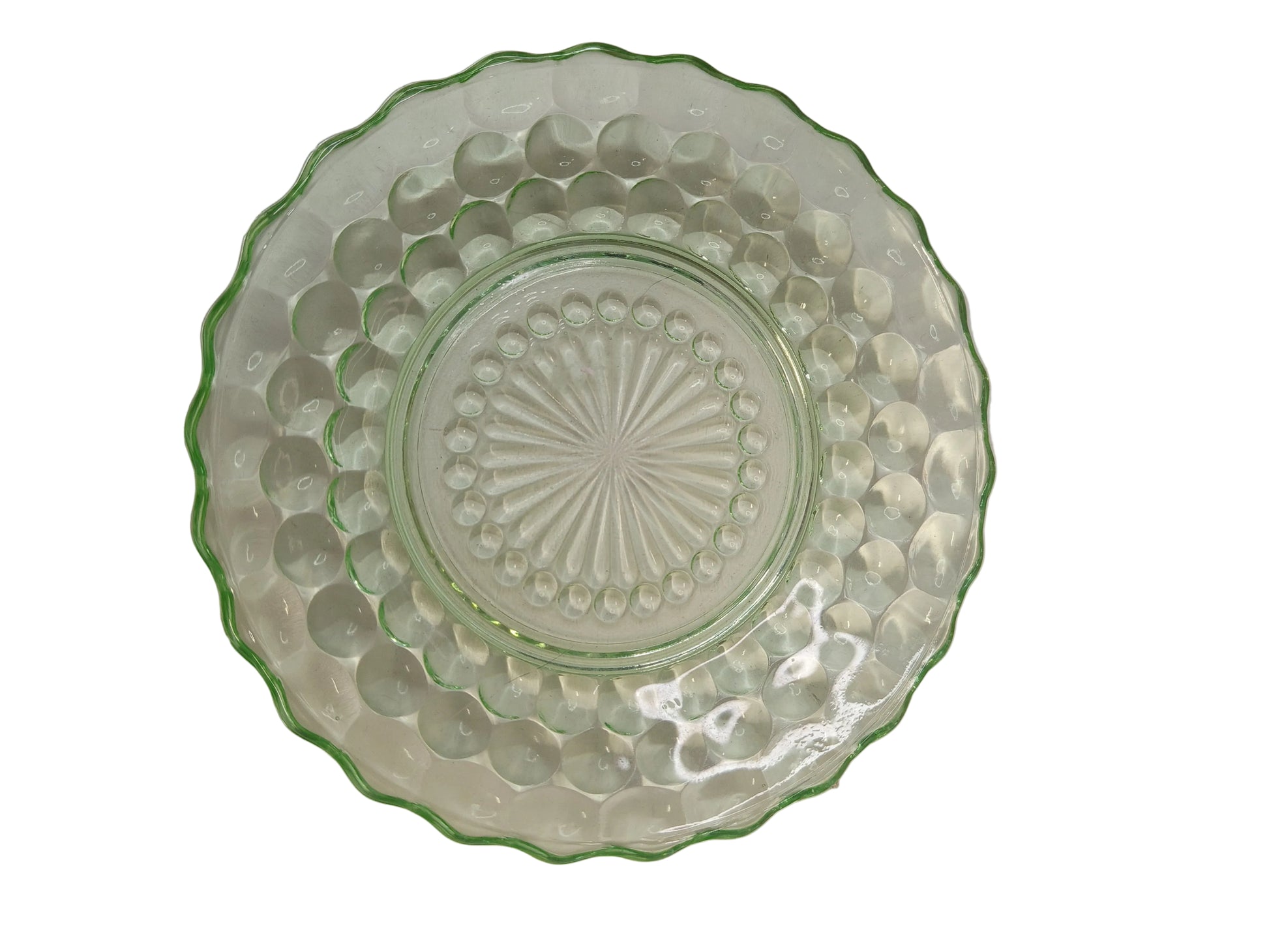 Green Depression Glass Dish - Bubble Pattern - 17cm